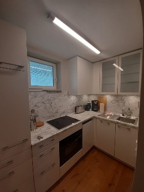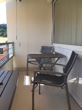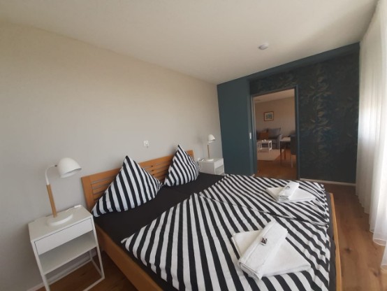 Unser Appartement "D" eignet sich für 2 bis 4 Personen (3 Erwachsene oder 2 Erwachsene und 2 Kinder). Die Unterkunft ist bei einer Größe von 52 m² ausgestattet mit einer kleinen Küche, TV und gutem Internetzugang und besitzt ein separates Schlafzimmer und ein Schlafsofa. Das Appartement liegt im 3. OG mit einem Balkon und man hat einen tollen Blick auf die Berge. Zu diesem Appartement gehört ein fest für Sie reservierter Parkplatz. Es wurde 2022 renoviert und ist in einem super Zustand.